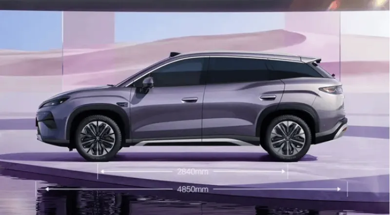 车型尺寸方面,宋Ultra EV定位全新中型SUV,新车长宽高分别为4850/1910/1670mm,轴距为2840mm,宋Ultra EV又要比宋L EV高不少,在空间上将会更大。车侧流线动感的腰线贯穿整个车身,全新的门把手保证安全也降低风阻,多条辐轮圈更具高级感。