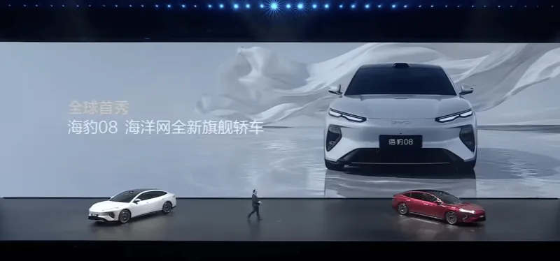在今晚的比亚迪二代刀片暨闪充技术发布会上,比亚迪海洋网全新旗舰轿车海豹 08 迎来全球首秀。新车搭载闪充、后轮转向,全系标配辅助驾驶,配备云辇-A 车身控制系统,将于今年 2 季度正式上市。