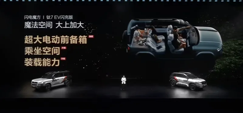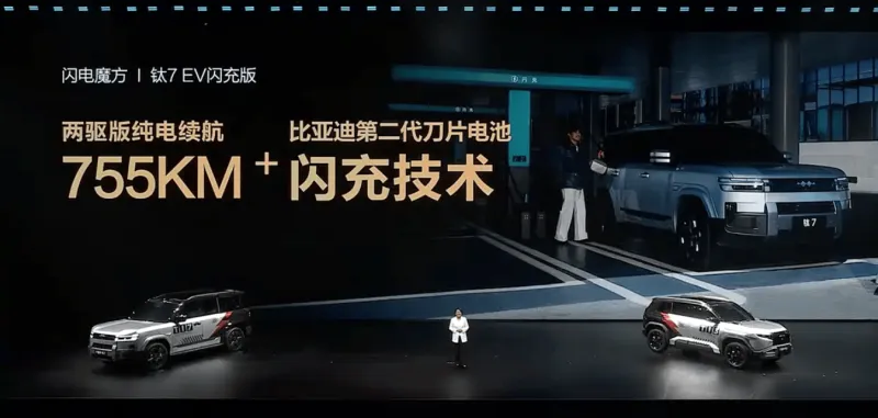 方程豹钛7 EV闪充版正式发布,此前钛7仅提供插混版本车型,此次新增纯电版车型,并引入闪充技术。