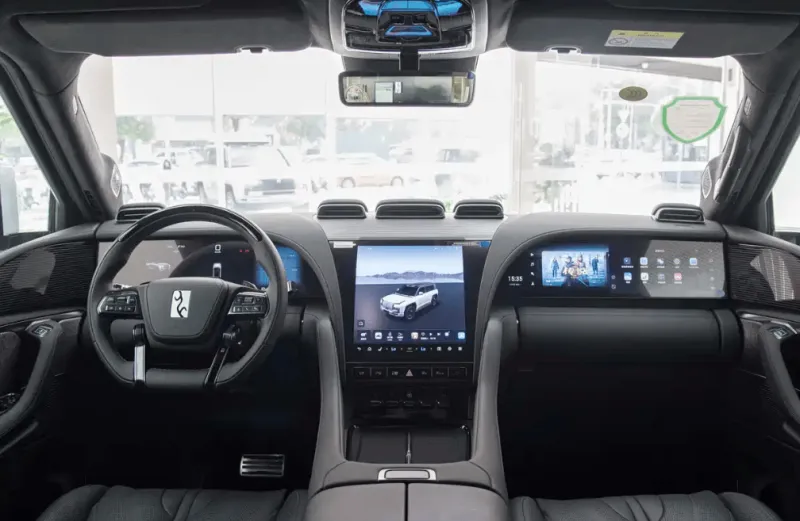 内饰方面,新车拥有浓郁的豪华氛围,对称式设计,中控台集成三块车机屏,后排还有两块12.8英寸屏幕,支持5屏联动。具备22扬声器丹拿铂金证据系列音响、Nappa真皮座椅、五门电吸、三层夹胶玻璃天窗、双层夹胶玻璃、二十四节气香氛、全车热石按摩、后排座椅一键放倒等功能。