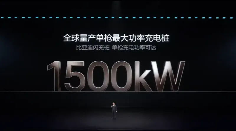 比亚迪闪充桩单枪充电功率高达1500kW,是全球量产单枪最大功率充电桩,并搭载储充一体系统,不会伤害电网。