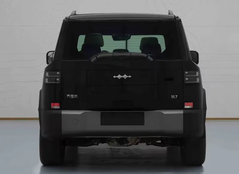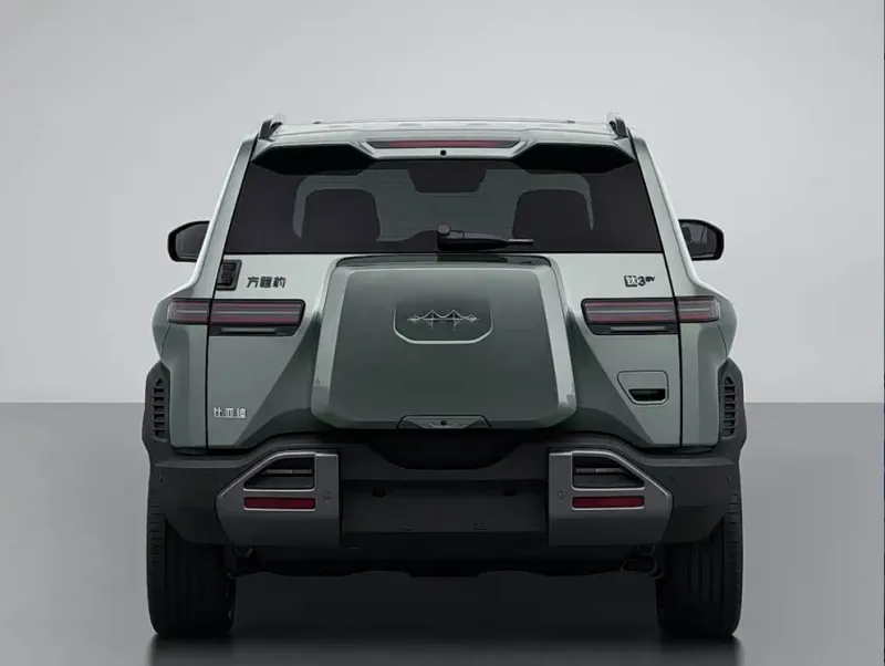 车辆尾部,同样是双L型尾灯样式,外挂式小书包造型,侧开尾门样式,整体设计简洁干练且方正魁梧。